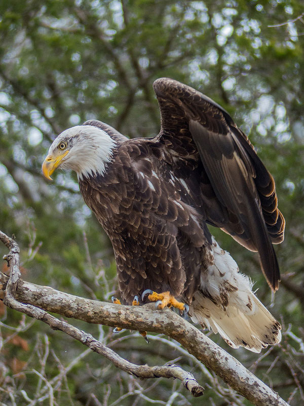 The eagles that live in Canada and the Great Lakes states start heading south when the northern lakes and rivers freeze over, blocking them from their supply of fish.